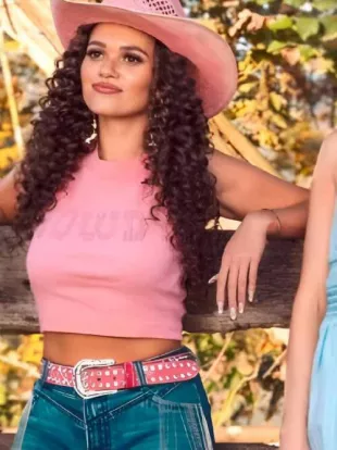 Débardeur court Howdy en strass rose porté par Lexi (Madison Pettis) dans le film The Wrong Paris 2025