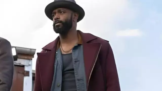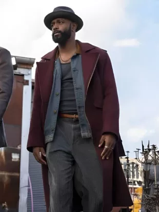 Play Dirty LaKeith Stanfield Manteau long bordeaux porté par Grofield (Lakeith Stanfield) dans Play Dirty