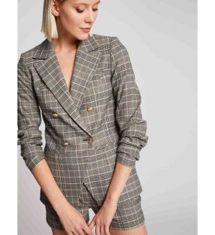 La veste droite boutonnée à carreaux rose de Émilie Tran Nguyen dans 12/13 Journal de France 3 le 13.02.2020