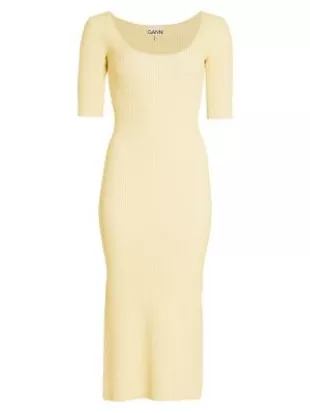 Ganni Melange Rib-Knit Midi-Dress portée par Gayle King vue dans CBS Mornings le 3 octobre 2023