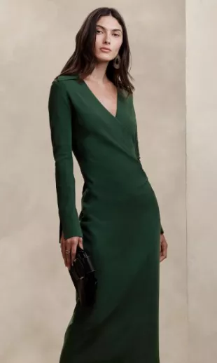 Banana Republic Ghita Polo Wrap Sweater Dress porté par Nancy Chen dans CBS Mornings le 26 décembre 2023