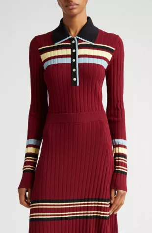 Wales Bonner Wander Long Sleeve Polo Sweater porté par Gayle King tel qu’on le voit dans CBS Mornings le 13 février 2024