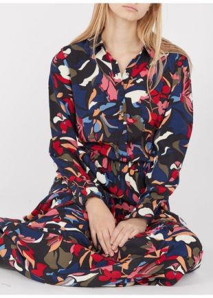 La robe longue col classique imprimée en crêpe bleu de Élodie Gossuin dans Familles extraordinaires