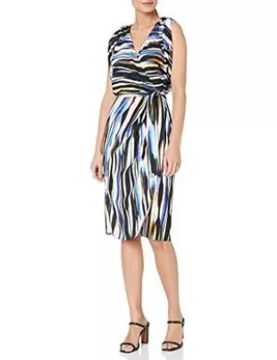 Nicole Miller Robe faussement portefeuille imprimée striée portée par Tara Narula telle que vue dans Good Morning America le 28 juillet 2025