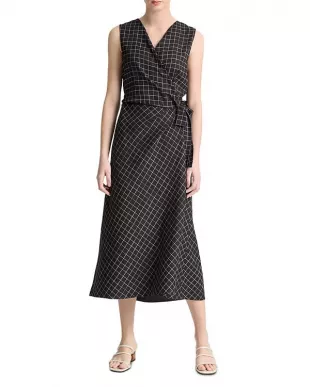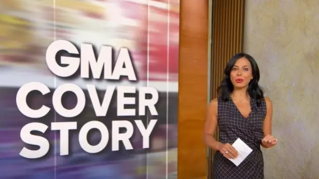 Robe portefeuille à carreaux en treillis Vince portée par Tara Narula vue dans Good Morning America le 1er août 2025