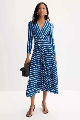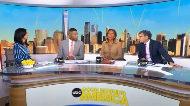 Maje Rayemitte Robe midi à ourlet asymétrique portée par Tara Narula comme on le voit dans Good Morning America le 23 septembre 2025