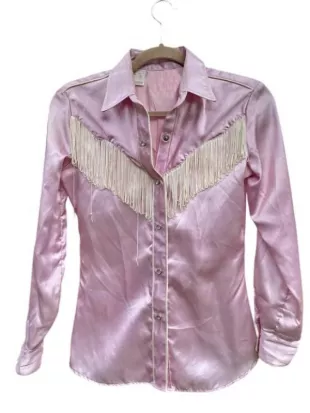 Heartland S19 Baye McPherson Pink Satin Fringe Western Shirt