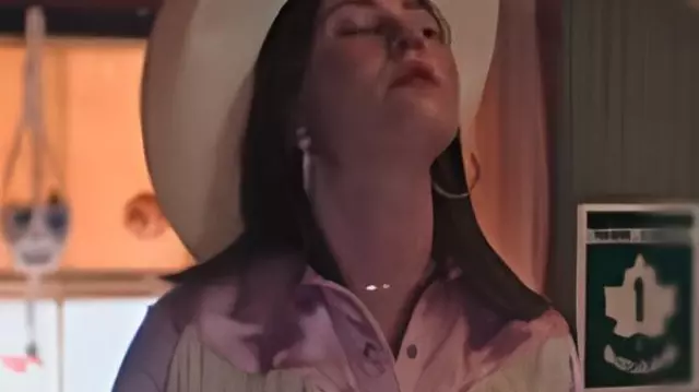Heartland Katie Fleming Morris Chemise western en satin rose à franges portée par Baye McPherson comme on le voit à Heartland (2007) (CA)