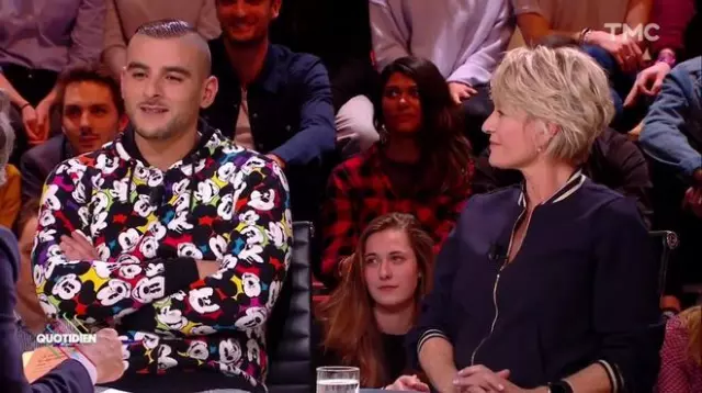 Le sweatshirt à capuche avec des têtes de Mickey de Sofiane dans l'émission Quotidien