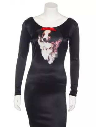 SATURDAY NIGHT LIVE Robe noire imprimée de chien portée par Sabrina Carpenter comme on le voit dans Saturday Night Live