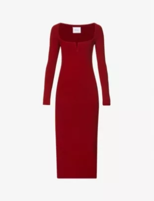 Galvan London Freya Robe midi à col carré et tissée extensible portée par Eve comme on le voit au Tamron Hall Show le 17 septembre 2024