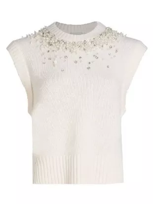 Gilet blanc orné de Sara Haines porté par Sara Haines comme on le voit dans The View