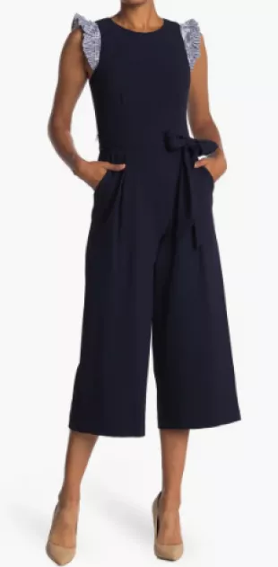 Eliza J Combinaison courte à manches larges à volants contrastés portée par Vicky Nguyen comme on le voit dans Aujourd’hui le 6 juin 2024