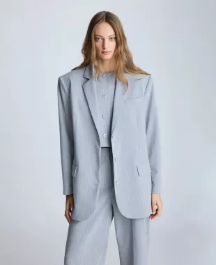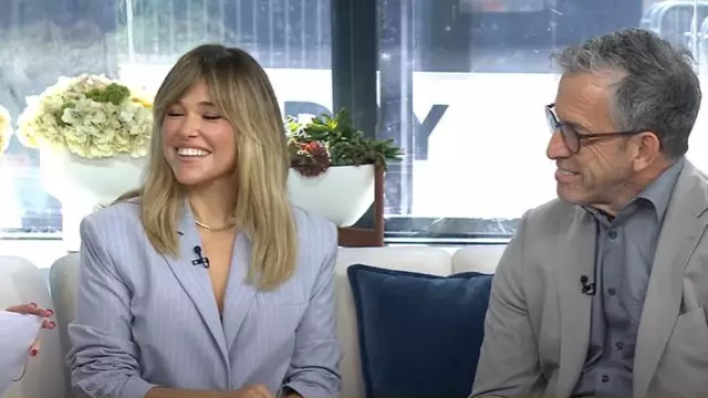 Kenneth Cole Veste à col cranté boutonnée à fines rayures portée par Rachel Platten comme on le voit dans Today le 2 mai 2025
