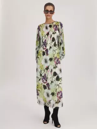 Robe midi à manches blouson imprimée Reiss Florere portée par Natalie Azar comme on le voit dans Today le 13 septembre 2025