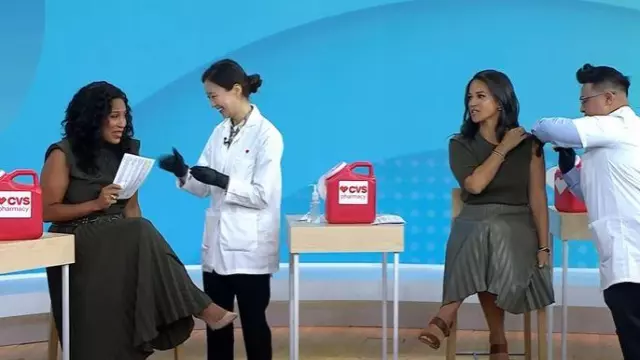 Sandales Manolo Blahnik Khan Suede 90mm portées par Laura Jarrett comme on le voit dans Today le 17 septembre 2025
