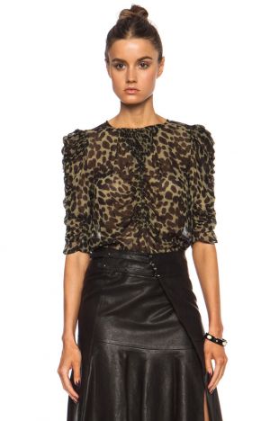Isabel Marant Etoile Leopard Print Voile Caja Haut porté par Dakota (Leslie Bibb) au Sujet d'un Garçon (S02E06)