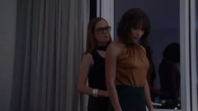 Col haut Haut de Satin porté par Edie Palmer (Megalyn Echikunwoke) dans Près de Famille Saison 1 Épisode 12
