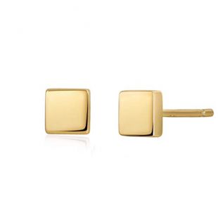 S.Leaf Minimalism Dainty Stud Earrings Sterling Silver Square Stud Earrings Everyday Wear (Yellow Gold)
