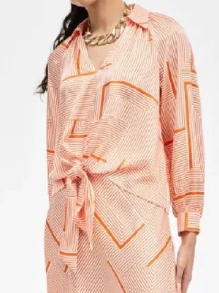 La chemise à imprimé géométrique orange Bold and the Beauty portée par Brooke Logan (Katherine Kelly Lang) comme on le voit dans The Bold and the Beautiful