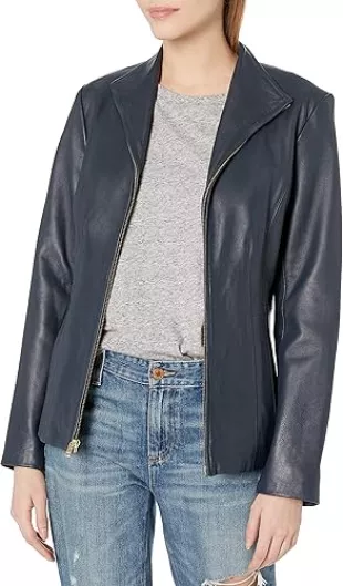 Cole Haan Veste à col cassé Blouson en cuir porté par Eddie Janko (Vanessa Ray) comme on le voit dans Blue Bloods (S14E15)