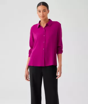 Eileen Fisher Chemise à col classique en crêpe de Georgette de soie portée par Erin Reagan (Bridget Moynahan) comme on le voit dans Blue Bloods (S14E16)