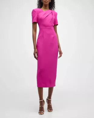 Roland Mouret Robe midi plissée en crêpe à manches courtes portée par le Dr Carol Pierce (Tamberla Perry) comme on le voit dans Brilliant Minds (S02E01)