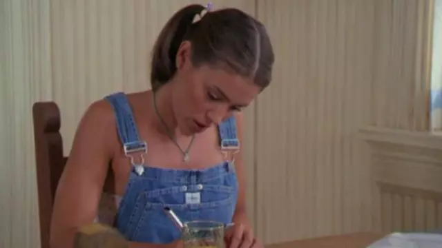 La salopette Calvin Klein portée par Phoebe Halliwell (Alyssa Milano) dans la série Charmed (Saison 2 Episode 3)