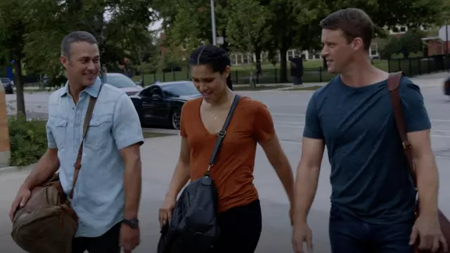 Madewell Whisper Coton V-Neck Tee porté par Stella Kidd (Miranda Rae Mayo) comme on le voit dans Chicago Fire TV show garde-robe (Saison 10 Épisode 2)