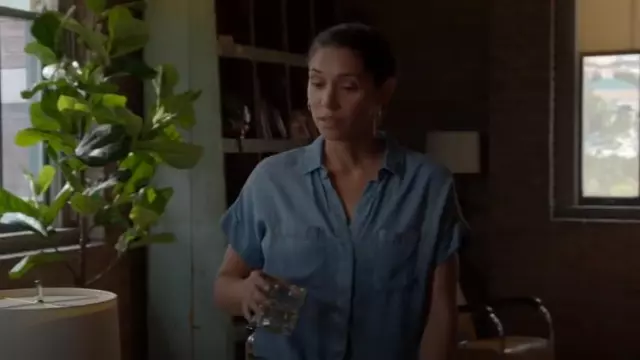 Chemise en chambray à nouer sur le devant Bella Dahl portée par Stella Kidd (Miranda Rae Mayo) comme on le voit dans Chicago Fire (S13E01)