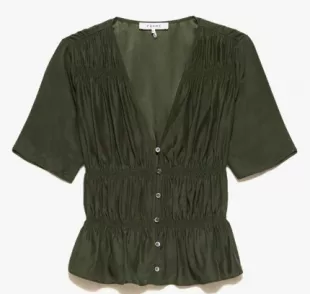Cadre : Haut à col en V froncé porté par Violet Mikami (Hanako Greensmith) comme on le voit dans Chicago Fire (S13E08)