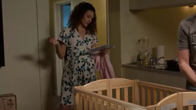 Robe d’été portefeuille de maternité pour femmes Seraphine portée par Carmen Diaz (Vanessa Rubio) comme on le voit dans Cobra Kai (S06E11)
