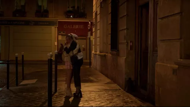 Les chaussures noires à talons carrés noirs à brides portées par Camille (Camille Razat) dans la série Emily in Paris (Saison 1 Episode 10)