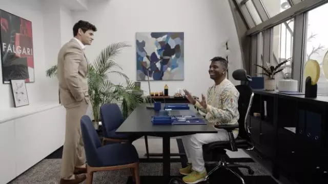 Les looks de la série Emily in Paris : Julien (Samuel Arnold) porte des sneakers UZS dans l'épisode 2, de la saison 4