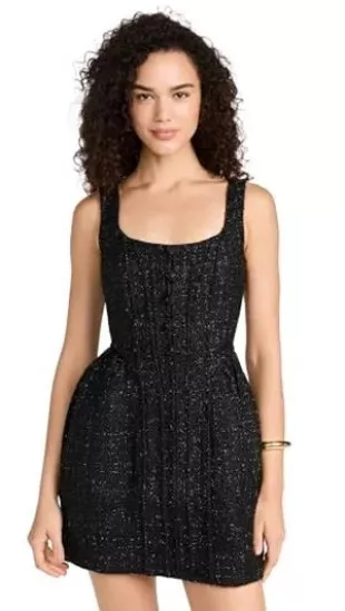 Autoportrait Mini-robe noire bouclée pour femmes portée par Penelope Garcia (Kirsten Vangsness) comme on le voit dans Esprits criminels (S18E03)