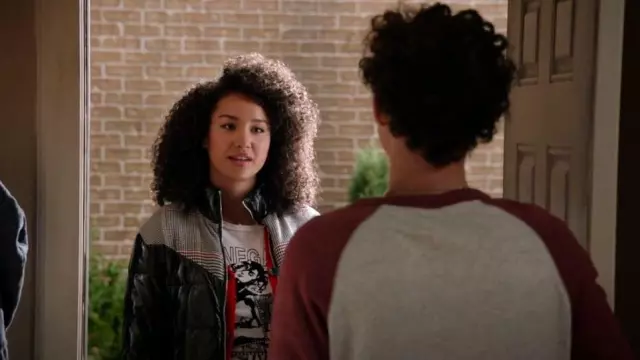 Glamour Plaid-Panel Faux Patent Leather Puffer Jacket porté par Gina (Sofia Wylie) comme on le voit dans High School Musical: The Musical: The Series (S04E01)