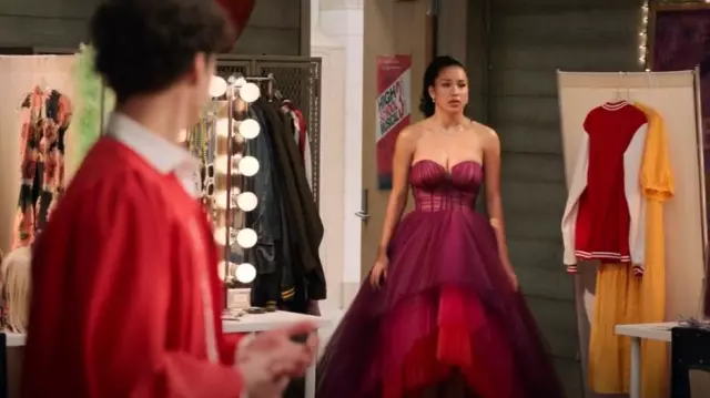Carolina Herrera Robe bustier en tulle - Violet porté par Gina (Sofia Wylie) comme on le voit dans High School Musical: The Musical: The Series (S04E08)