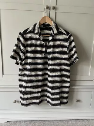 Asos Design Blanc/Noir Zig Zag Rayé Manches Courtes Crochet Top porté par Trey Campbell comme on le voit dans Hitmakers (S01E06)