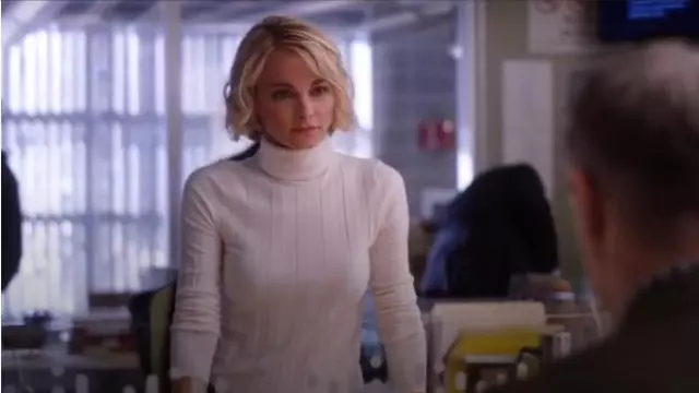 Derek Lam Blanc Inez Chandail à Manches Longues portées par Lizzie Needham (Bojana Novakovic) dans l'Instinct (Saison 02 Épisode 07)