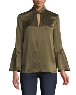 Elie Tahari Noir Laraib Twist Encolure Chemisier de Soie porté par Det. Lizzie Needham (Bojana Novakovic) dans l'Instinct (Saison 02 Episode 08)