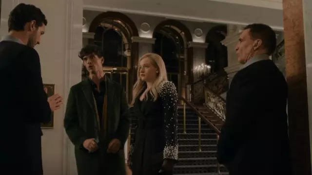 Badgley Mischka Imitation Perle Robe portée par Anna Delvey (Julia Garner) comme on le voit dans Inventing Anna (S01E02)