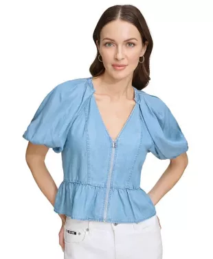 DKNY Blouse à manches bouffantes zippée sur le devant portée par Regina Upshaw (Kim Fields) comme on le voit dans The Upshaws (S06E08)