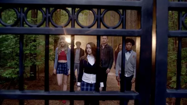 Le crop top rouge de Lizzie Saltzman (Jenny Boyd) dans Legacies S01E03