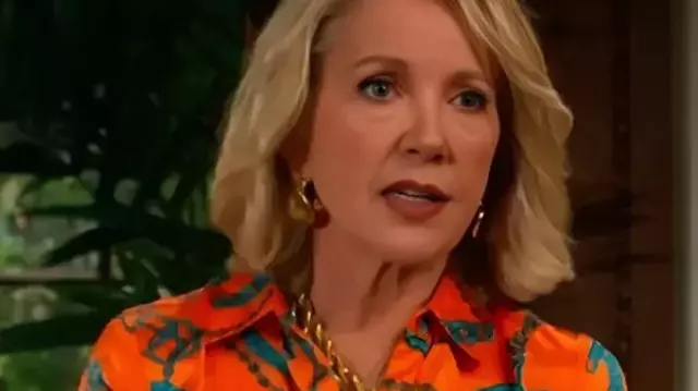 Blouse à imprimé chaîne Nikki Reed Newman portée par Nikki Reed Newman (Melody Thomas Scott) comme on le voit dans Les Feux de l’Amour