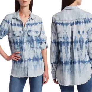 Bella Dahl Tie Dye Utility Frayed Button Up Shirt porté par Shannon Beador comme on le voit dans The Real Housewives of Orange County (S17E03)