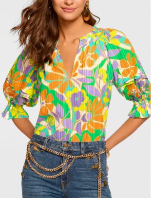 Ramy Brook Trixie Puff Sleeve Top porté par Jennifer Pedranti comme on le voit dans The Real Housewives of Orange County (S19E16)