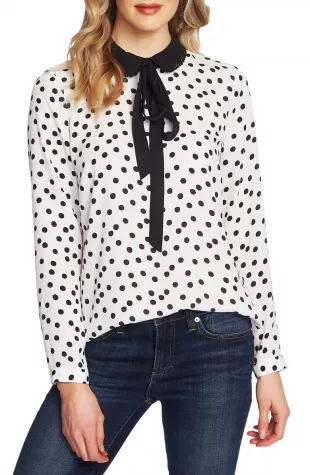Blouse à pois portée par Parker (Beth Riesgraf) dans les tenues de la série télévisée Leverage: Redemption (saison 1 épisode 7)