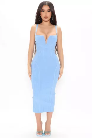 Fashion Nova Misty Bandage Midi Dress - Bleu porté par Keylen Johnson comme on le voit dans Love Is Blind (S09E01)