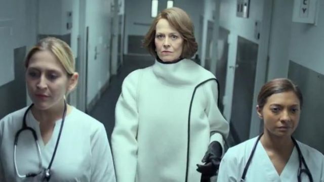 Le manteau Sportmax Jolly blanc d'Alexandra (Sigourney Weaver) dans The Defenders S01E01