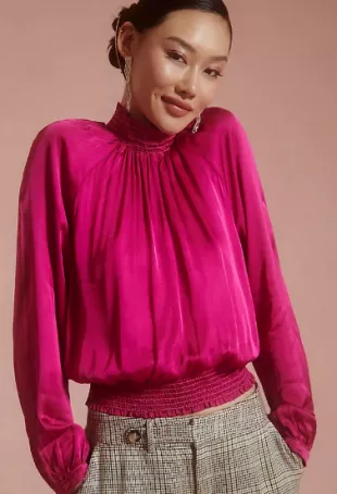 Bella Dahl Blouse en satin smocké portée par Ts Madison comme on le voit dans Ms. Pat Settles It (S02E01)